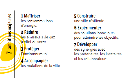7 ambitions majeures structurent le Plan d'Actions d'Elogie-Siemp en faveur du Climat à horizons 2030 et 2050. C'est un engagement d'agir pour atteindre la neutralité carbone, basé sur l'expérimentation, l'évaluation et le retour d'expérience. Ce plan d'action, adopté par le Conseil d'Administration d'Elogie-Siemp le 19 décembre 2019, a été partagé et discuté en amont avec un collège d'experts, composé de représentants de cabinets d'élus et des directions de la Ville de Paris, de l'ADEME, de l'APAC, de l'APUR et d'Efficacity, ainsi que de représentants des associations de locataires, de partenaires professionnels et de collaborateurs d'Elogie-Siemp.