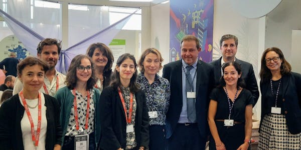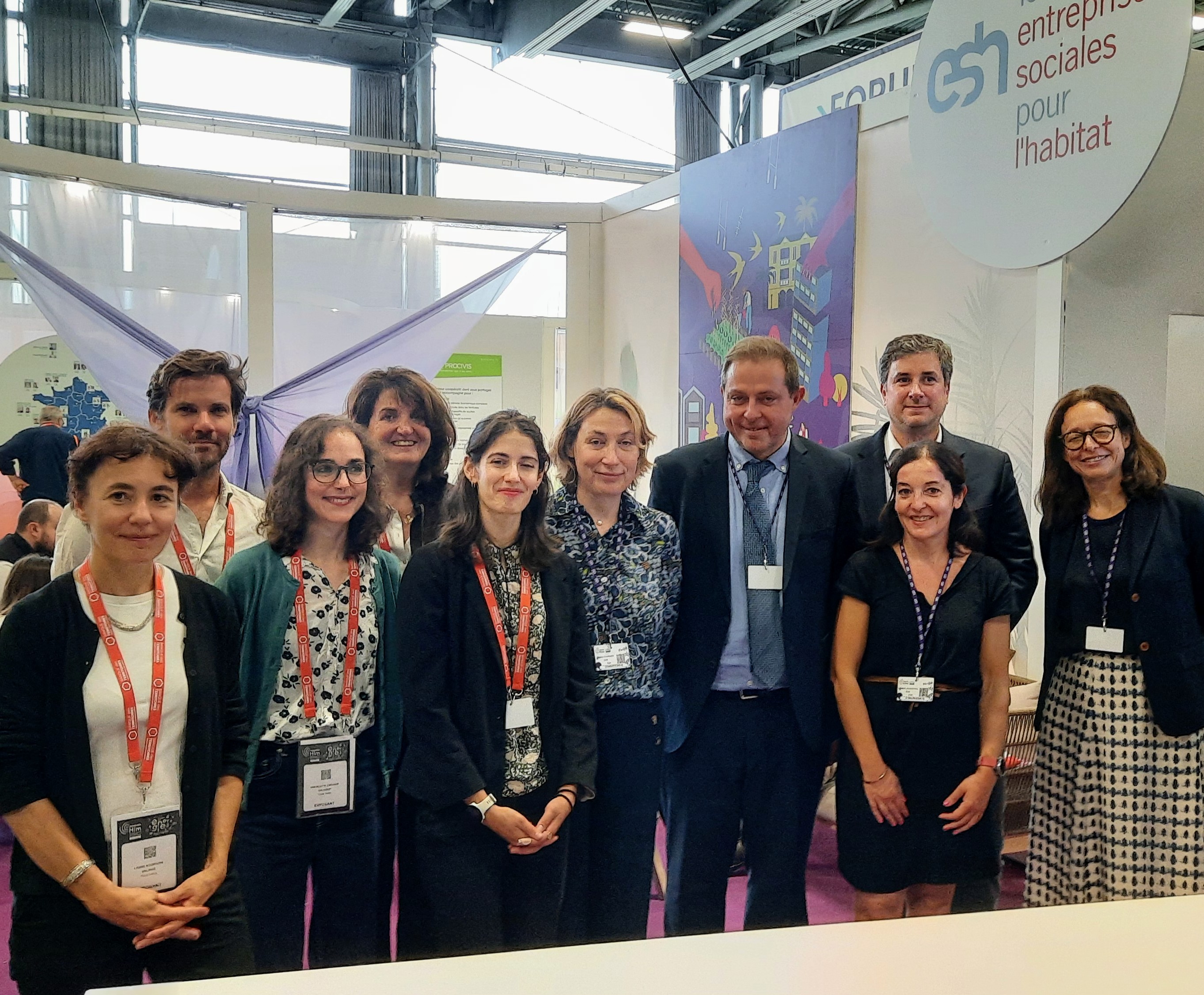 Photo de g. à d. : Laure Bourgoin, Benjamin Hemmer, Charlotte Limousin, Nathalie Bertin, Anne Behlouli chez DELPHIS ; Valérie Fournier, Didier Poussou, Julien Mestre, Elisabeth Alves Dias, Karen Laloum pour la Fédération des esh. Nantes, Congrès Hlm 2023.